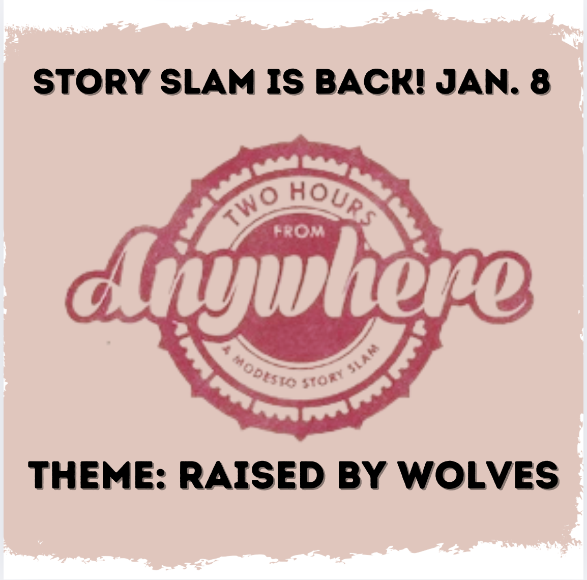 –Monday night Write Club meet-ups at Bookish with Julia Washington and myself, where we practice craft, write, share and give feedback. Anywhere from five to fifteen writers show up, laptops and notebooks in tow, to dedicate time to their projects. Check this out at www.bookishmodesto.com/events<www.bookishmodesto.com/events> and if you’re more of an oral storyteller, don’t miss our Two Hours from Anywhere story slam on January 8 – the theme is “raised by wolves – stories of the family dynamic” and we are here for the stories of your weird family traditions, iffy parenting strategies, and “can’t believe I survived that” stories.